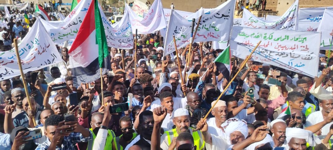 في أكبر حشد جماهيري مدينة ربك تخرج في اكبر تظاهرة وتندد بممارسات منظمة الدعم السريع الإرهابية