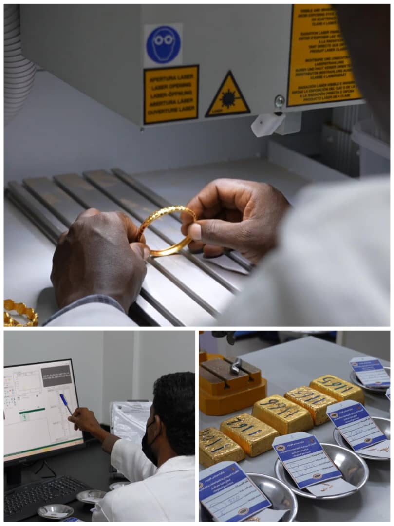 وأوضح انو الإجراءات الفنية تتم بقسم دمغ المصوغات الذهبية في القطاع.