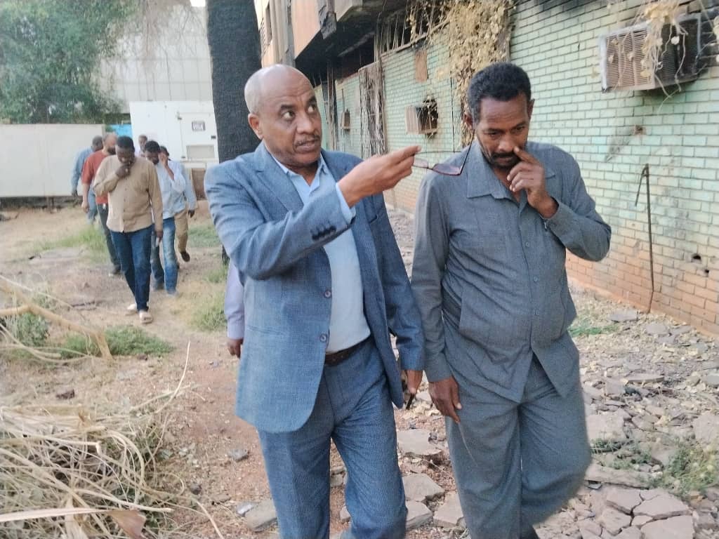 وفى سياق آخر تفقد المدير العام برفقة مدير الادارة العامه للمباني بوزاره البني التحتيه بالولاية مبني الرئاسه للوقوف على سلامة المبانى من اي مخاطر اثر تعرض الجزء الغربي من المبني لعمليه تخريب كبيره وتصدع في الاعمده الاسمنتية