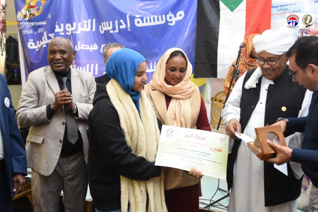 واختتمت الاحتفالية بتكريم الفائزين بشهادات تقديرية ودروع ومبالغ مالية، إلى جانب فواصل غنائية وطنية قدمها طلاب وطالبات مؤسسة إدريس التعليمية، نالت تفاعلاً واسعاً واستحسان الحضور، فيما أضفت المذيعة إيمان أحمد دفع الله ألقاً خاصاً على الاحتفالية بتقديم أنيق ولغة سلسة، عكست روح المناسبة.