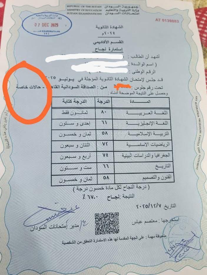 حذرت الدكتورة هيفاء عمر الحاج، خبير التربية الخاصة وتعليم الأشخاص ذوي الإعاقة، من “سابقة خطيرة” في تاريخ الشهادة السودانية، تتمثل في إدراج توصيف “حالة خاصة” على الشهادات الجامعية للطلاب ذوي الإعاقة الذين جلسوا لامتحانات عام 2025 عبر “الورقة الخاصة”.