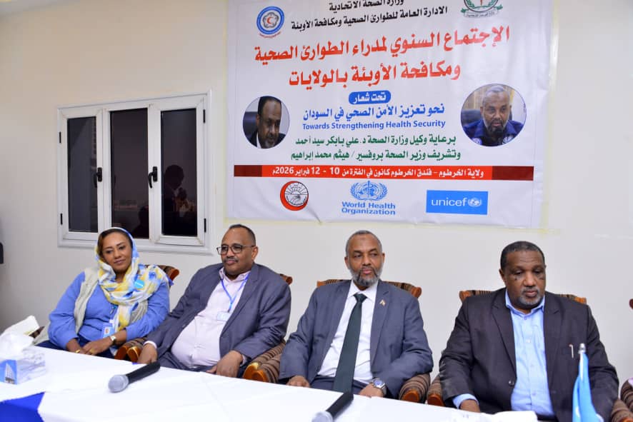 اختتمت الإدارة العامة للطوارئ الصحية ومكافحة الاوبئة،اليوم بفندق كنون بالخرطوم، الاجتماع السنوي لمديري الطوارئ الصحية بالولايات، والذي حمل شعار(نحو تعزيز الأمن الصحي بالسودان).