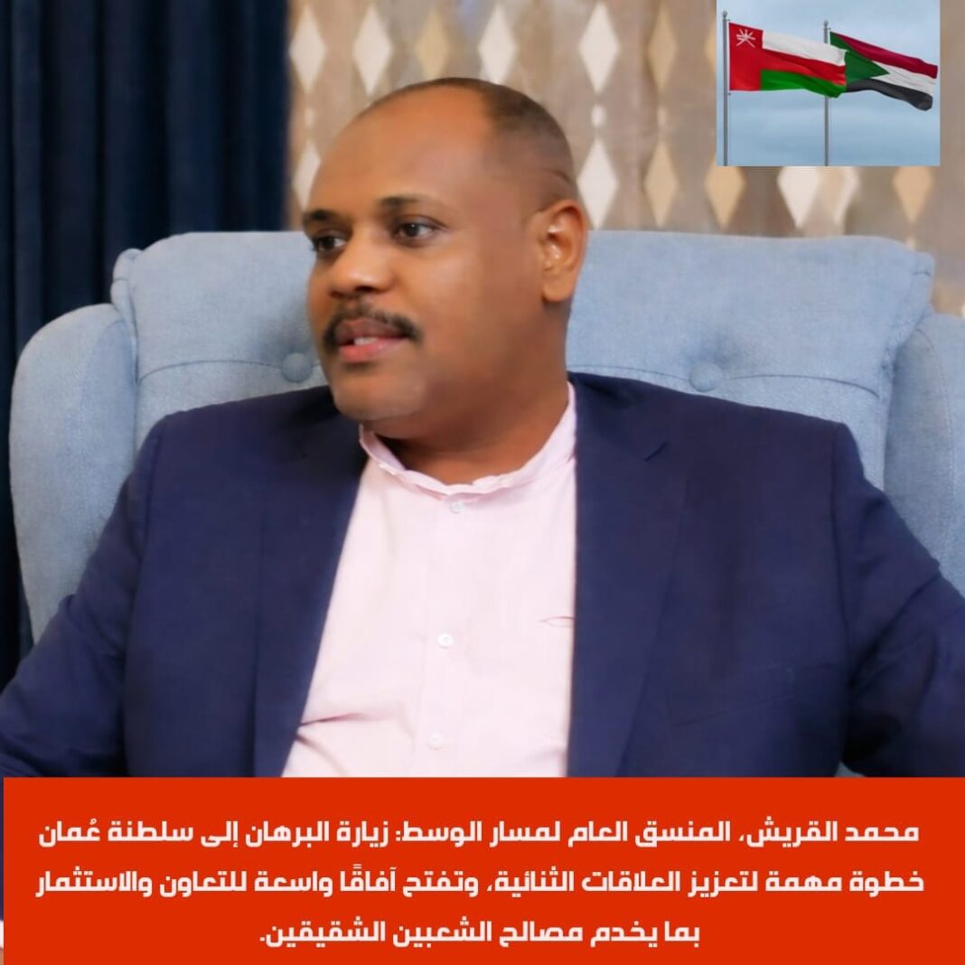 وأكد المنسق العام لمسار الوسط، محمد القريش، أن الزيارة تمثل محطة مفصلية في مسار العلاقات السودانية العُمانية، خاصة في ظل التحديات التي يواجهها السودان والمنطقة، مشيرًا إلى أنها تعكس عمق الروابط التاريخية والأخوية بين البلدين.