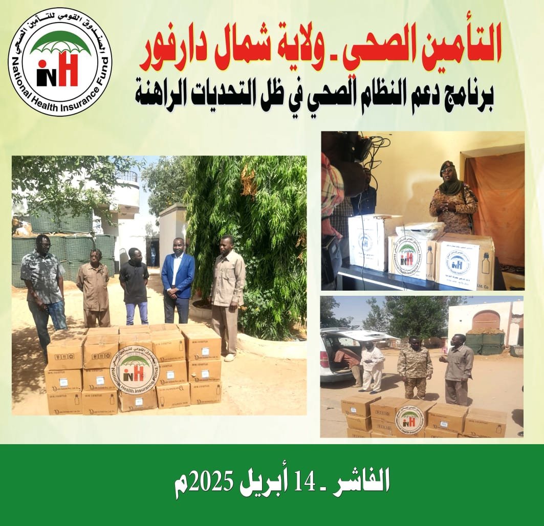 واكد مدير فرع الصندوق القومي للتأمين الصحي بولاية شمال دارفور الدكتور كرم الدين احمد كرم الدين اهتمام التأمين الصحي بمصابي العمليات العسكرية “لانه مؤسسة اجتماعية تحرص على التضامن مع المؤسسة حتى تتعافى الولاية من الأزمة الراهنة”.