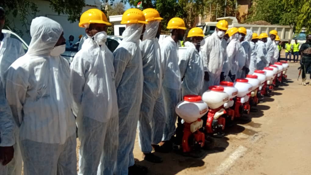 وكان والي الخرطوم دشن اليوم الحملة الشاملة للتعقيم والتطهير التي قادها المدير العام للادارة العامة للدفاع المدني الفريق شرطة د.عثمان عطا مصطفى الذي وصل الخرطوم اليوم على رأس وفد يضم قيادات الدفاع المدني بصحبة عدد مقدر من عربات الإطفاء والاسعافات ولنش للإنقاذ النهري ومعدات ومواد التعقيم.