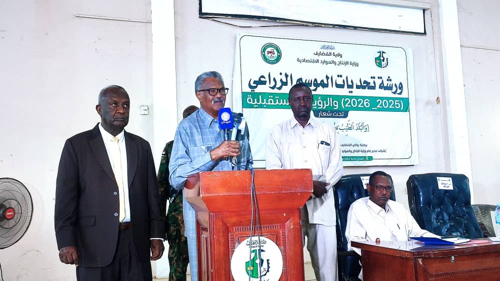 اكد نائب المدير العام للبنك الزراعى السودانى دكتور عز الدين على الفقير اهتمام البنك بمطلوبات العمليه الزراعيه لدعم وزيادة الانتاج لنامين الغذاء فى البلاد واعلن خلال مخاطبته لورشة تحديات الموسم الزراعى 2025- 2026 والرويه المستقبليه التى نظمتها وزارة الانتاج بولاية القضارف اليوم (الاثنين) بحضور والى الولاية الفريق الركن محمد احمد حسن احمد استعداد البنك الزراعى لتقديم التمويل الزراعى مطلع مايو المقبل مثمنا جهود حكومة ولاية القضارف واهتمامها بالزراعة لدفع عجلة الانتاج بالبلاد داعيا المزارعين الايفاء بالتزاماتهم تجاه البنك لضمان استمرار عمليات التمويل