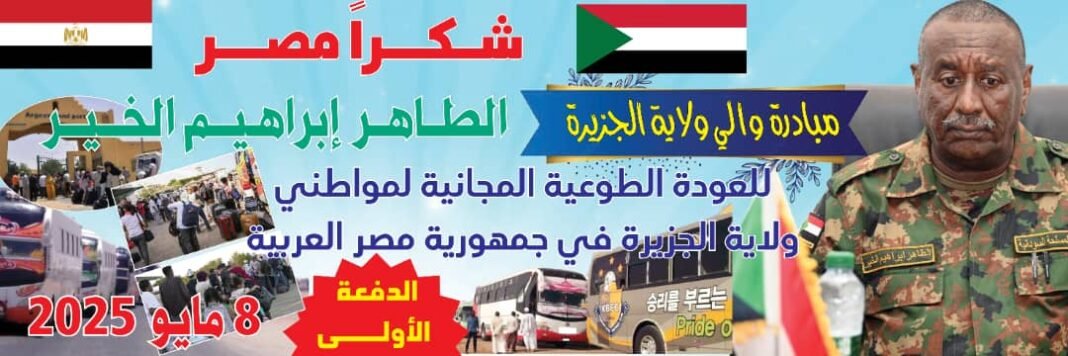 اكملت ولاية الجزيرة استعداداتها لانفاذ الوثبة الأولى من رحلات العودة الطوعية الطوعية لمواطني الولاية من مصر غدا (الخميس). .