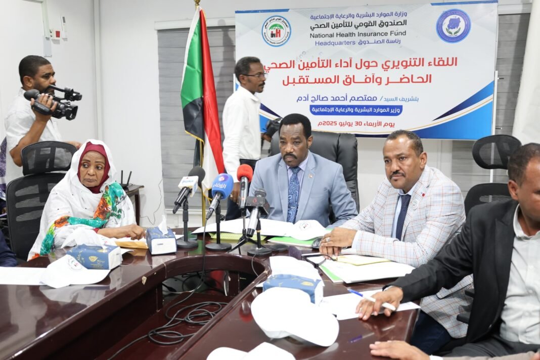 تعهد وزير الموارد البشرية والتنمية الاجتماعية معتصم أحمد صالح ببذل المزيد من الجهود لحث الجهات الرسمية في الدولة لسداد مديونيات التأمين الصحي.