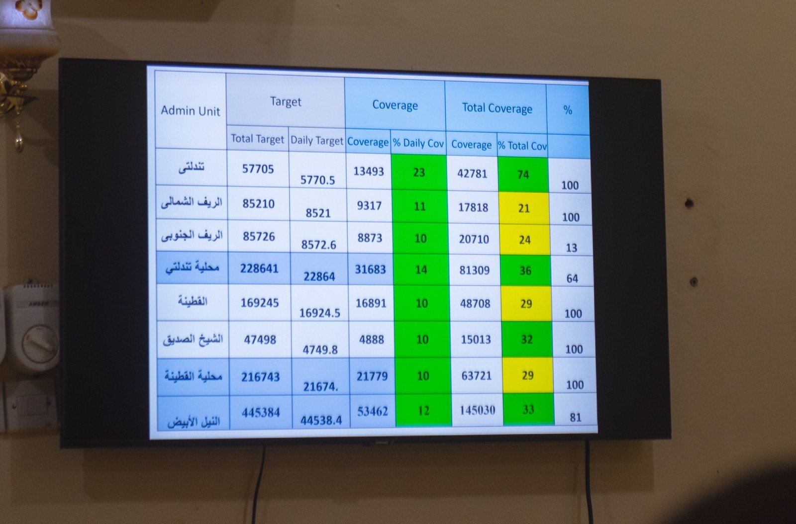 اكدت الغرفة الاتحادية لحملة التطعيم ضد مرض الكوليرا بثلاث ولايات، تلقي (53،913) شخصاً لقاح الكوليرا بمحلية شيكان بولاية شمال كردفان خلال ثلاثة أيام، من المستهدف الكلي (155،482) شخصا،